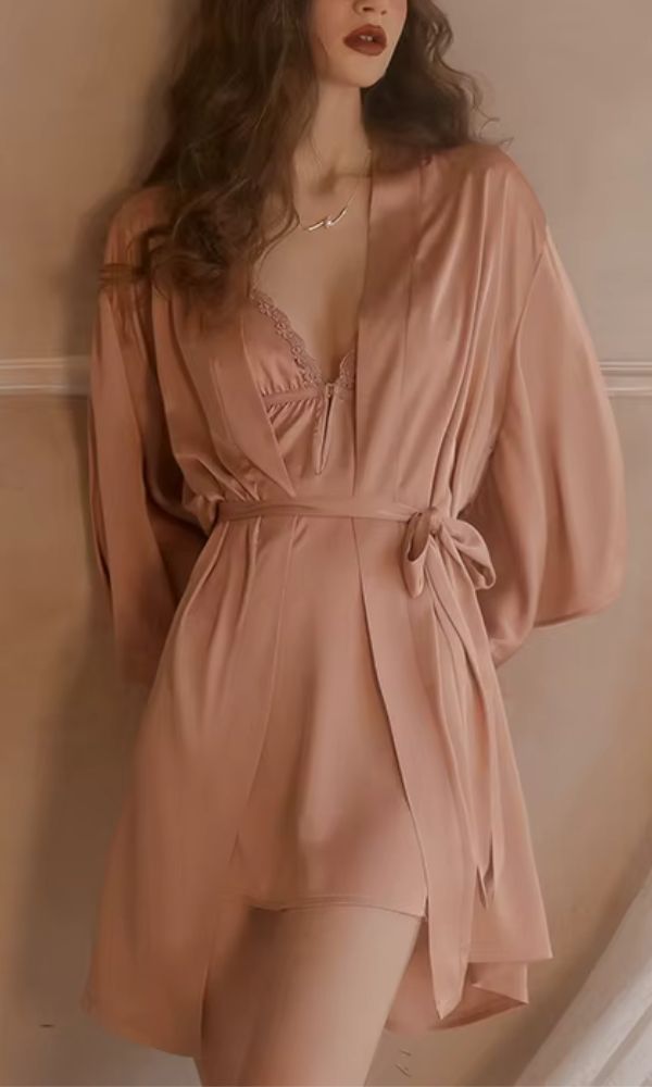 VINTAGE BLUSH SILKY SOFT SATEEN KIMONO WRAP