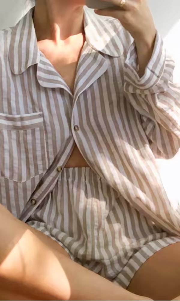 Soft and comfortable 100% Cotton Boxer Set in latte stripe.